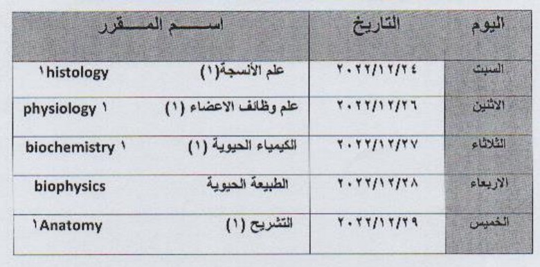 جدول الامتحانات العملية ببرنامج الطب والجراحة