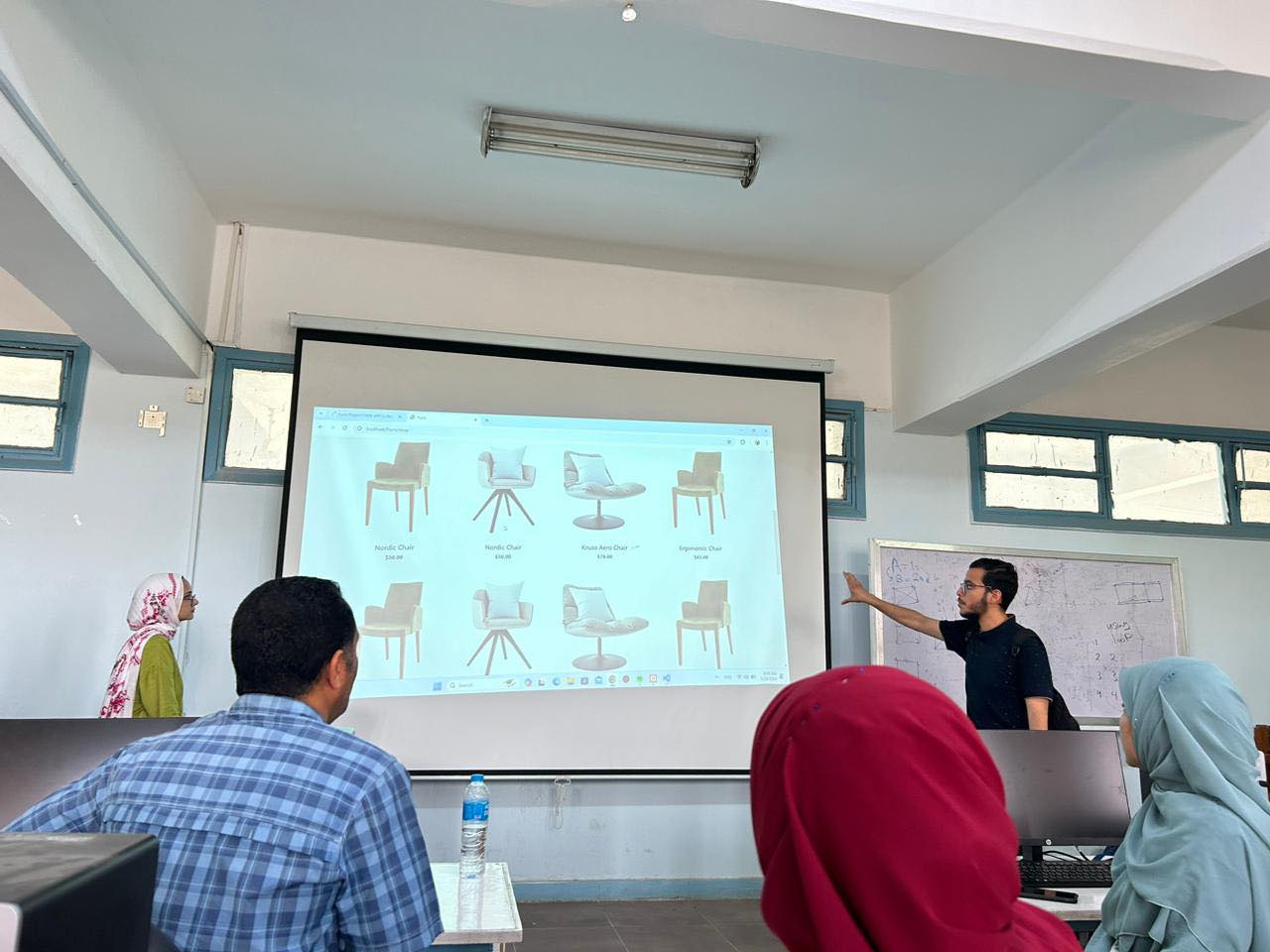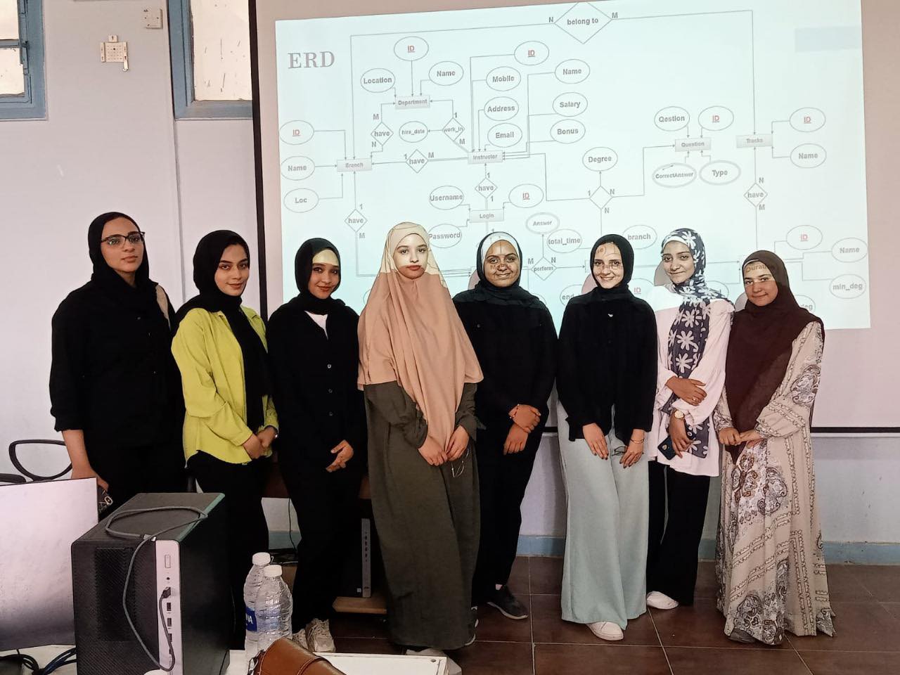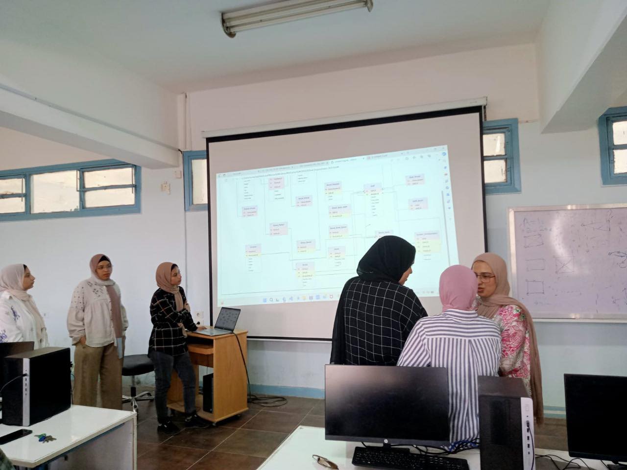 فى اطار توجيهات الدكتور احمد عكاوي رئيس الجامعة واشراف الدكتور همام الشاذلي مدير برنامج الحاسبات وبحضور أساتذة المقررات الدكتور عماد علي أحمد والدكتورة امال أحمد راشد تمت مناقشة المشروعات المختلفة المقدمة من الطلاب في مقررات قواعد البيانات وتكنولوجيا الويب. والجدير بالكر أن عمل المشاريع والمناقشة جزء أساسي من التقييمات والتكليفات في الامتحانات الدورية والعملية والتقييم المستمر الذي يجريه برنامج الحاسبات للوقوف علي مدي فهم الطالب للمفاهيم الأساسية لعمل المشروعات والبرامج التي لها علاقة بسوق العمل وكيفية التعامل مع فريق عمل لإنجاز مشاريع كبيرة. وقد أبدي الطلاب سعادتهم بتعليقات لجنة المناقشة والتي تمثلت في مدير البرنامج وأساتذة المقررات ومعاوني أعضاء هيئة التدريس ممن لهم خبرة سابقة في شركات برمجة وذات علاقة بمتطلبات سوق العمل والتي من طبيعتها الإضافة القوية لتحسين المشروع وتوجيه الطلاب نحو فهم وترسيخ المفاهيم الأساسية.
