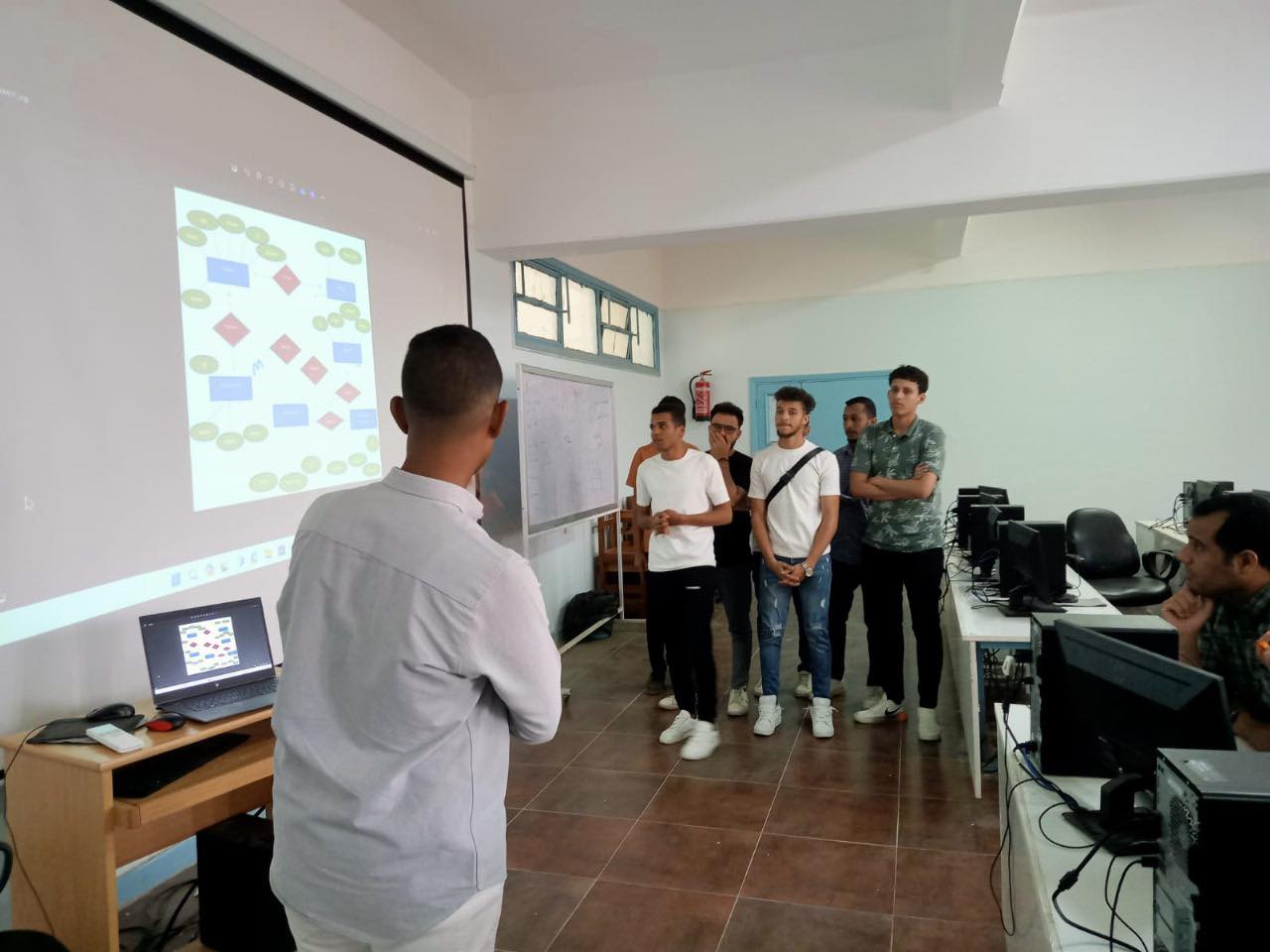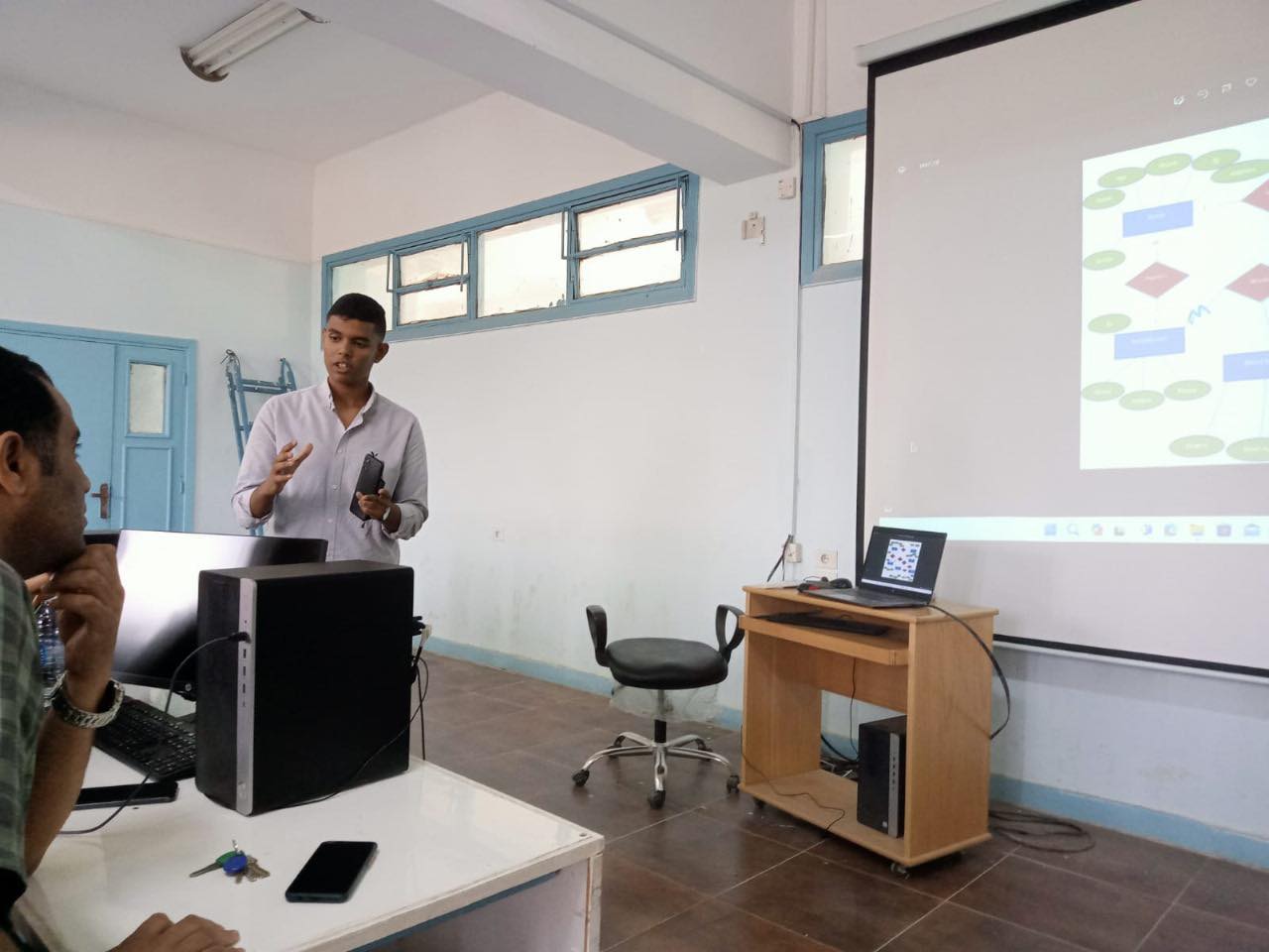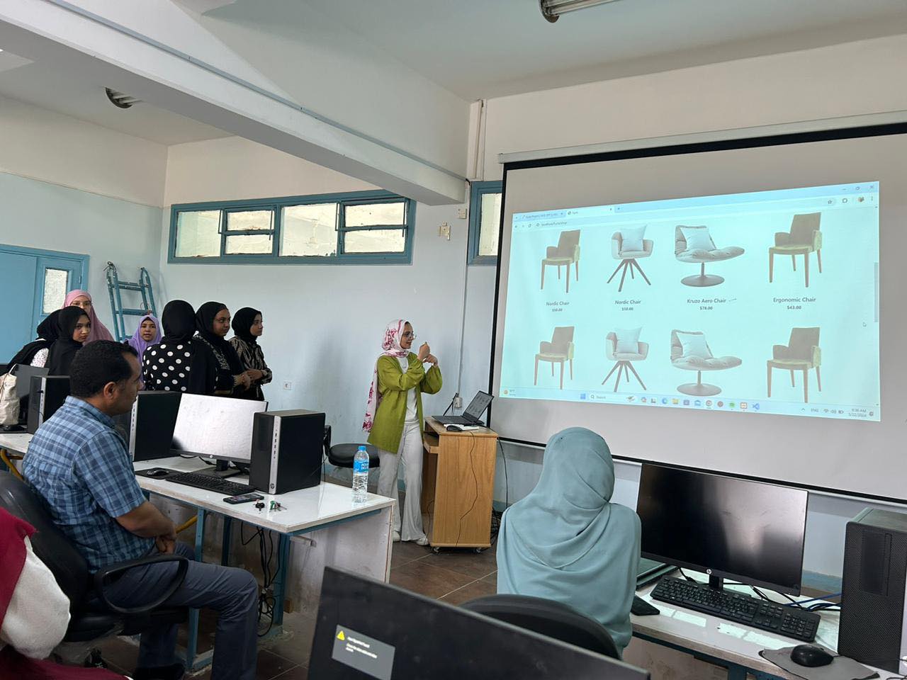 فى اطار توجيهات الدكتور احمد عكاوي رئيس الجامعة واشراف الدكتور همام الشاذلي مدير برنامج الحاسبات وبحضور أساتذة المقررات الدكتور عماد علي أحمد والدكتورة امال أحمد راشد تمت مناقشة المشروعات المختلفة المقدمة من الطلاب في مقررات قواعد البيانات وتكنولوجيا الويب. والجدير بالكر أن عمل المشاريع والمناقشة جزء أساسي من التقييمات والتكليفات في الامتحانات الدورية والعملية والتقييم المستمر الذي يجريه برنامج الحاسبات للوقوف علي مدي فهم الطالب للمفاهيم الأساسية لعمل المشروعات والبرامج التي لها علاقة بسوق العمل وكيفية التعامل مع فريق عمل لإنجاز مشاريع كبيرة. وقد أبدي الطلاب سعادتهم بتعليقات لجنة المناقشة والتي تمثلت في مدير البرنامج وأساتذة المقررات ومعاوني أعضاء هيئة التدريس ممن لهم خبرة سابقة في شركات برمجة وذات علاقة بمتطلبات سوق العمل والتي من طبيعتها الإضافة القوية لتحسين المشروع وتوجيه الطلاب نحو فهم وترسيخ المفاهيم الأساسية.