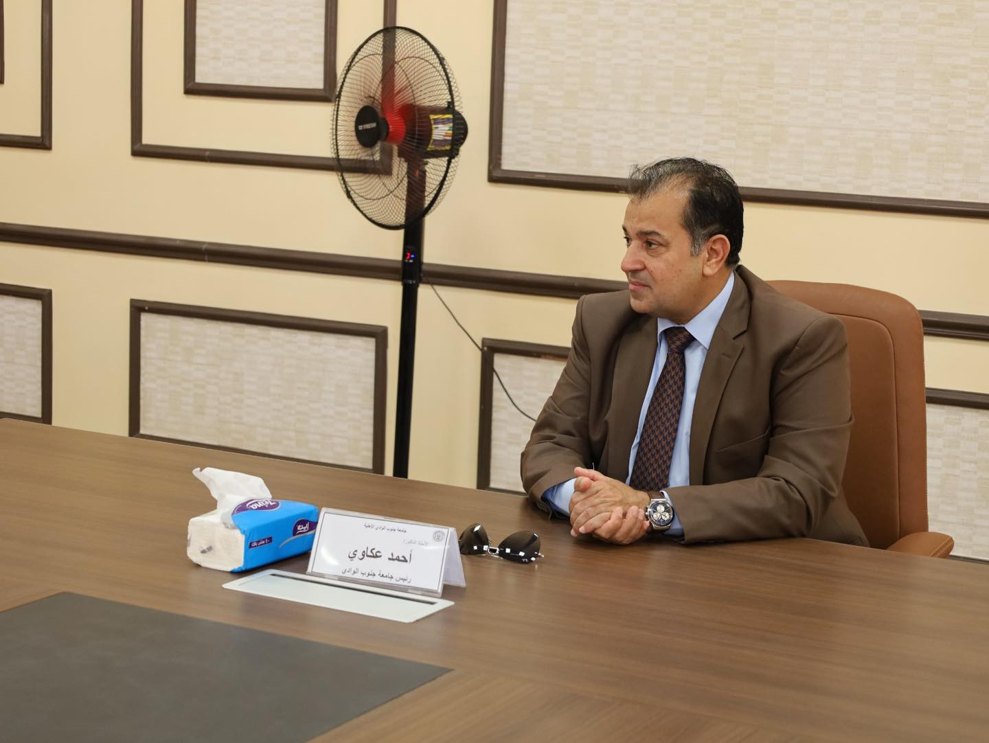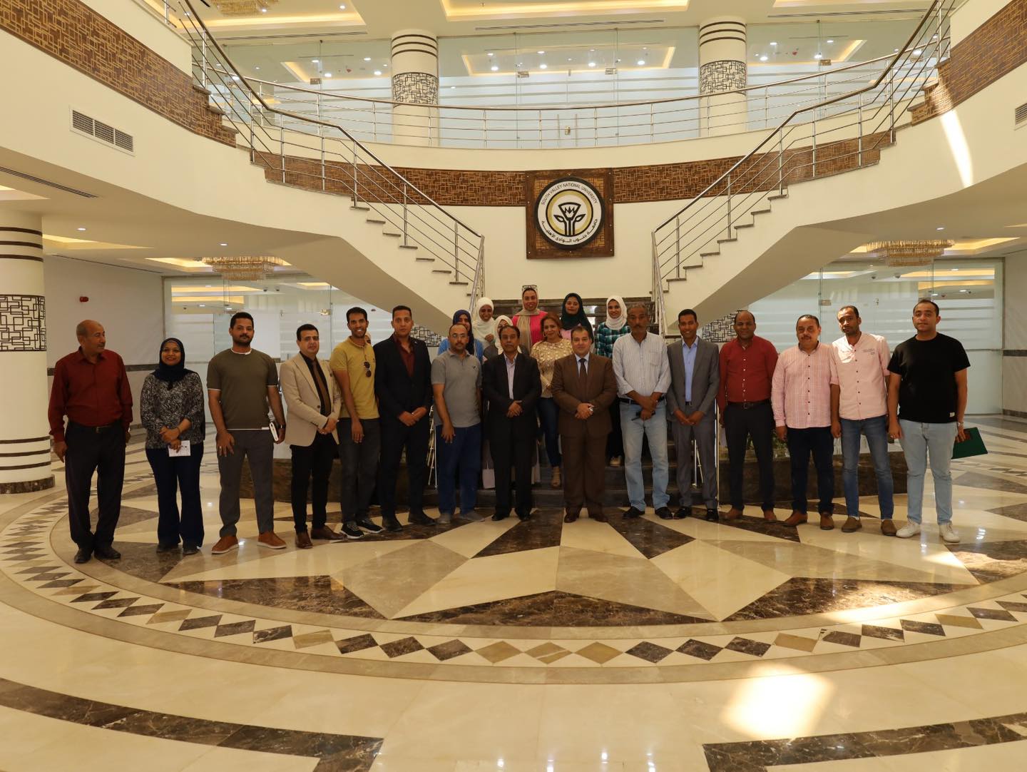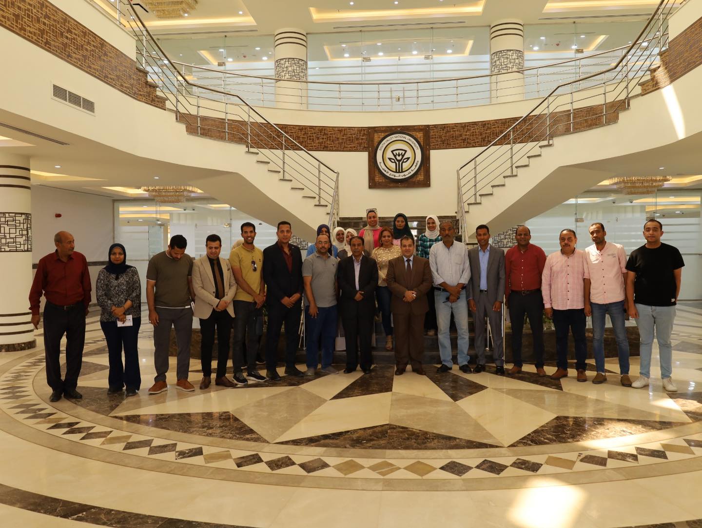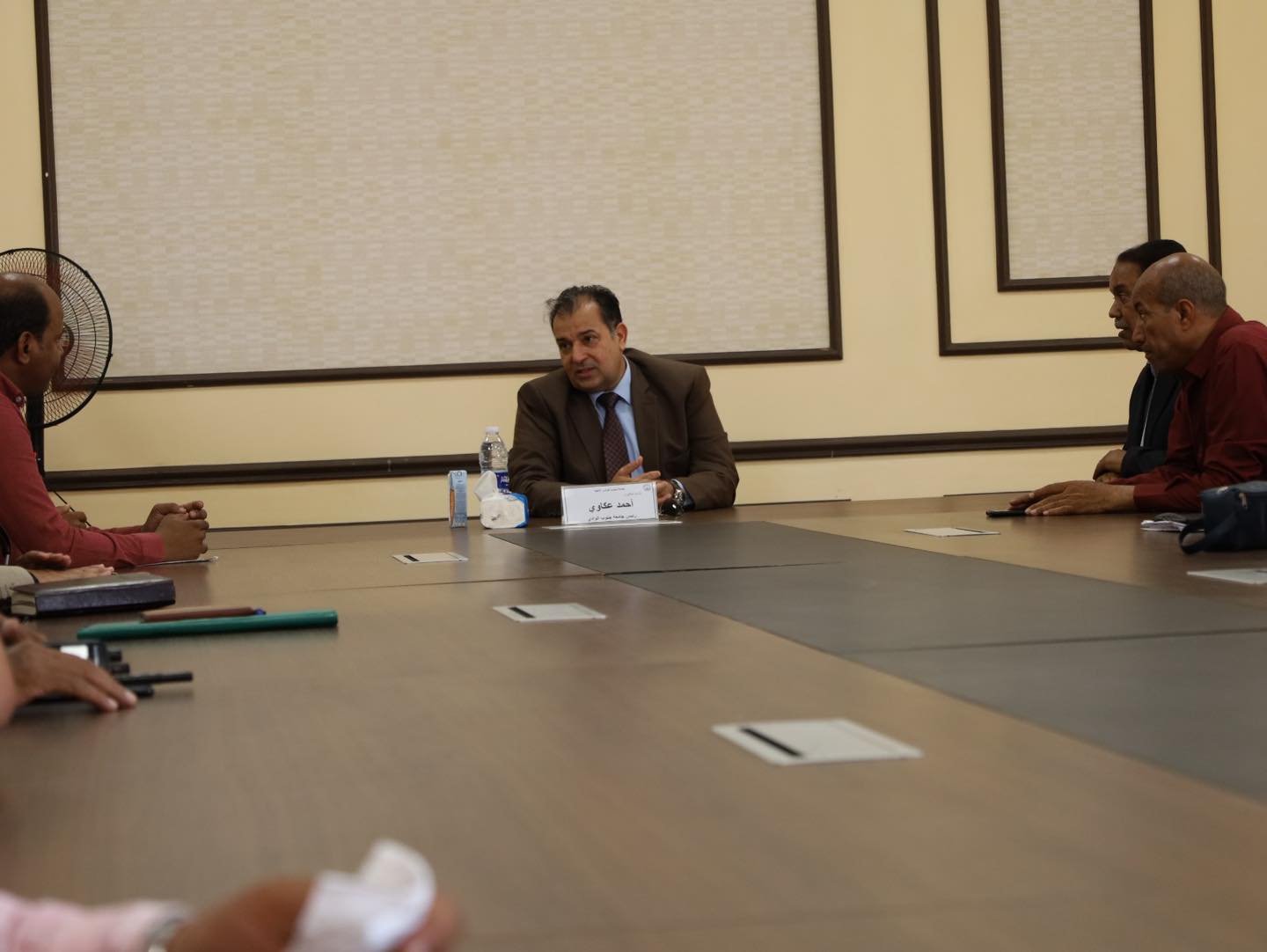 شهد الدكتور احمد عكاوي رئيس جامعة جنوب الوادي احتفالية معايدة عيد الاضحى المبارك بمقر جامعة جنوب الوادي الاهلية بحضور الدكتور عبدالرحيم يوسف مدير برنامج الهندسة واعضاء الجهاز الاداري للجامعة