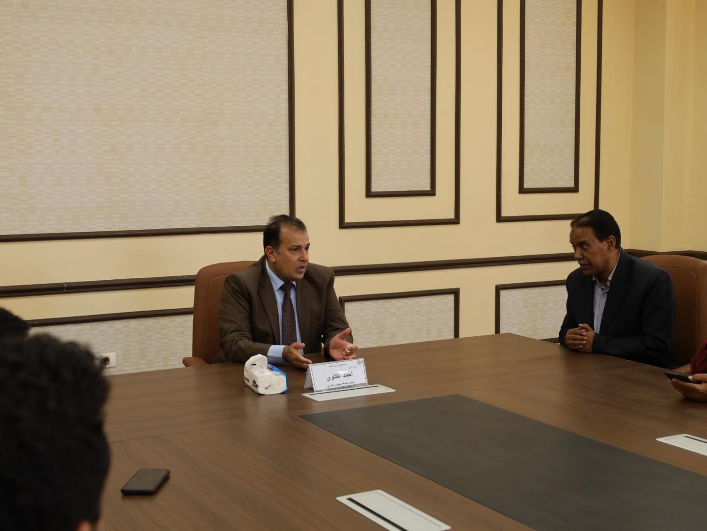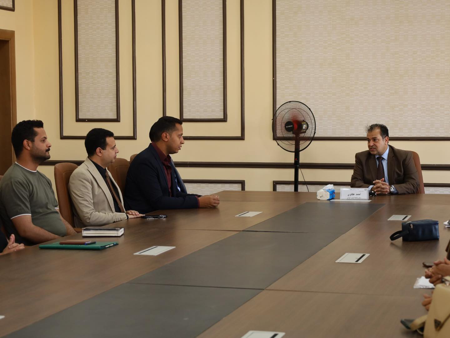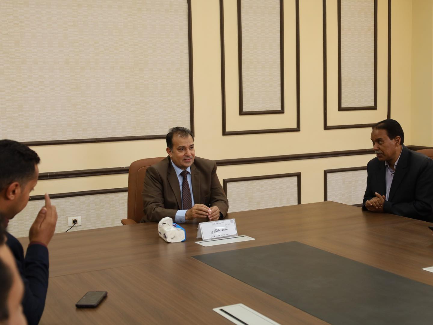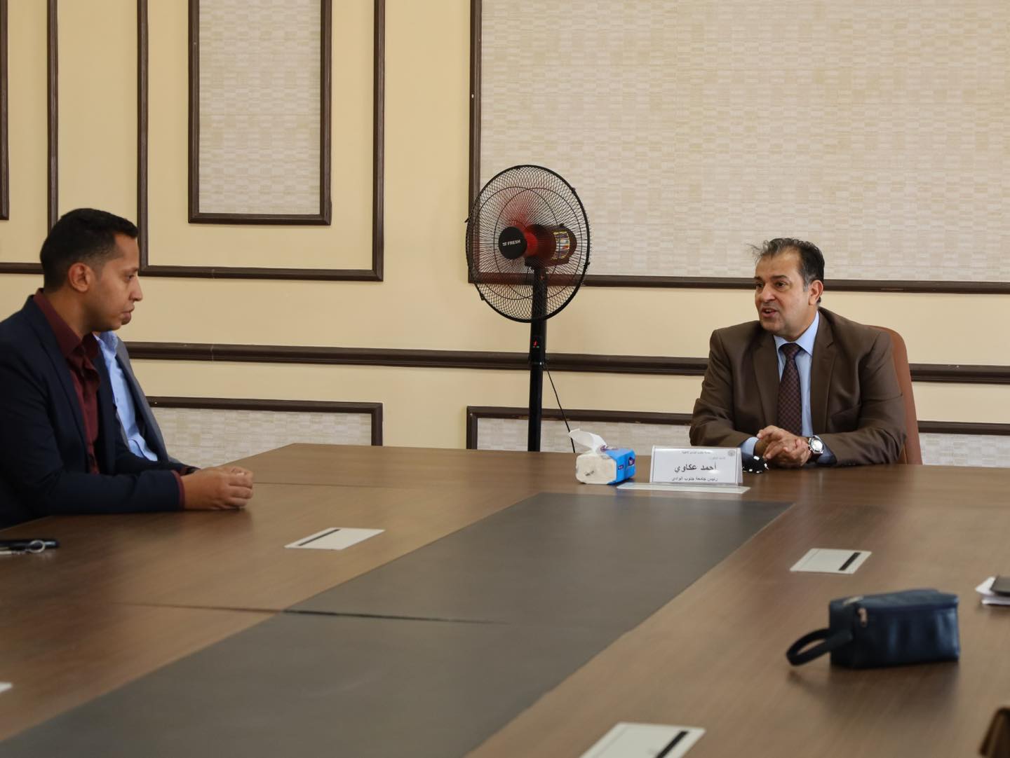 شهد الدكتور احمد عكاوي رئيس جامعة جنوب الوادي احتفالية معايدة عيد الاضحى المبارك بمقر جامعة جنوب الوادي الاهلية بحضور الدكتور عبدالرحيم يوسف مدير برنامج الهندسة واعضاء الجهاز الاداري للجامعة
