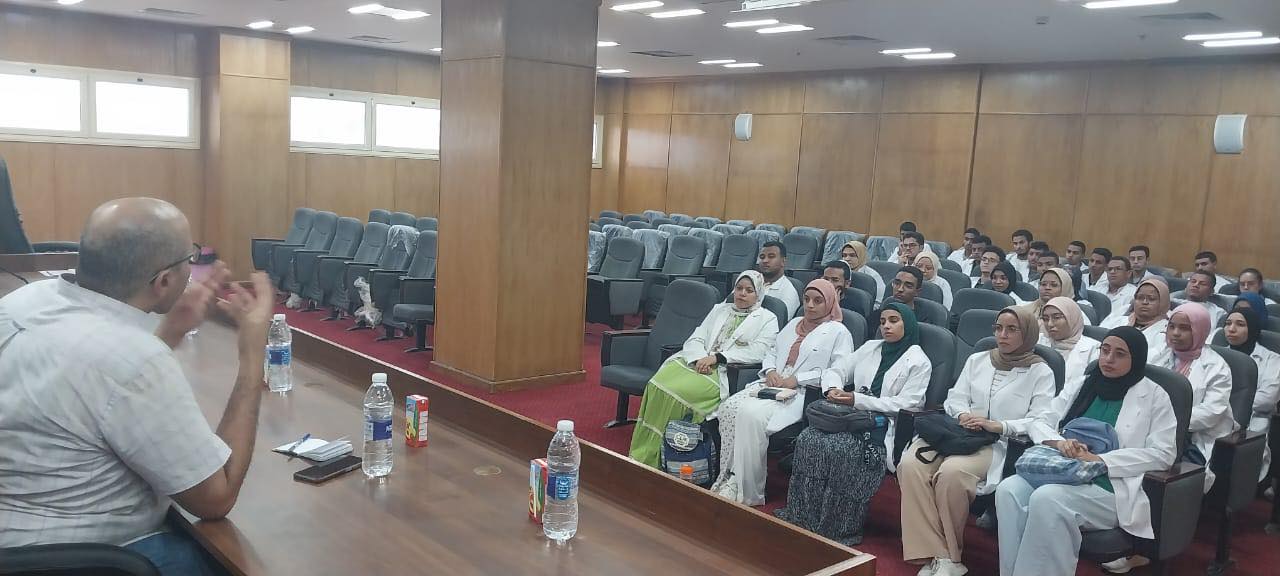 تحت رعاية الدكتور احمد عكاوي رئيس جامعة جنوب الوادي و الدكتور محمد اسماعيل النائب الاكاديمي وباشراف الدكتور احمد علي عامر مدير برنامج الطب و الجراحة اقيم اليوم لقاء للطلاب المشاركين في التدريب الصيفي لطلاب برنامج الطب والجراحة بجامعة جنوب الوادي الاهلية للتدريب في أقسام المستشفيات الجامعية المختلفة بقاعة المؤتمرات بمستشفي المرزوقي حيث تم