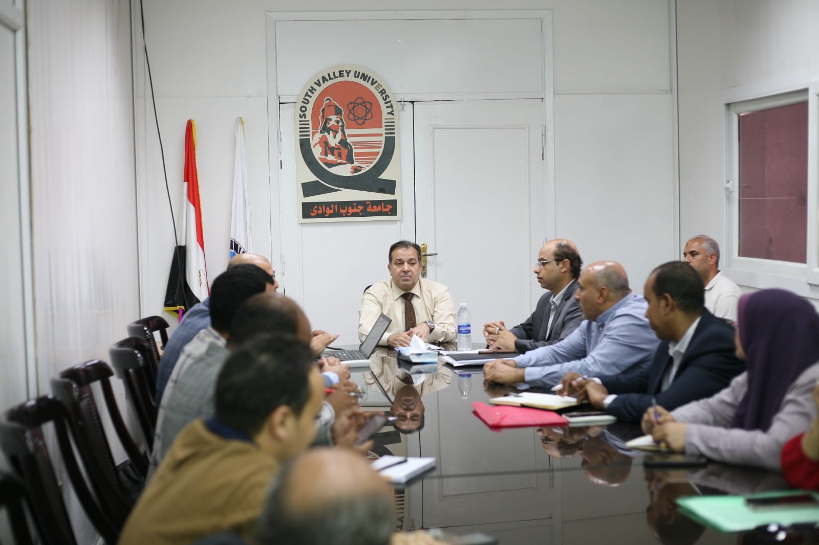 وخلال الاجتماع ناقش رئيس الجامعة جاهزية استقبال طلبات الالتحاق للطلاب الجدد ببرامج جامعة جنوب الوادي الاهلية ( الطب و الجراحة ، الصيدلة ، العلاج الطبيعي ، الهندسة ، الحاسبات والذكاء الاصطناعي ، التمريض ، الالسن )