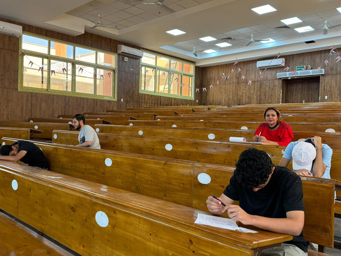 تجري الامتحانات بمتابعة من الاستاذة آمال حسيب مدير شؤون طلاب برنامج العلاج الطبيعي .