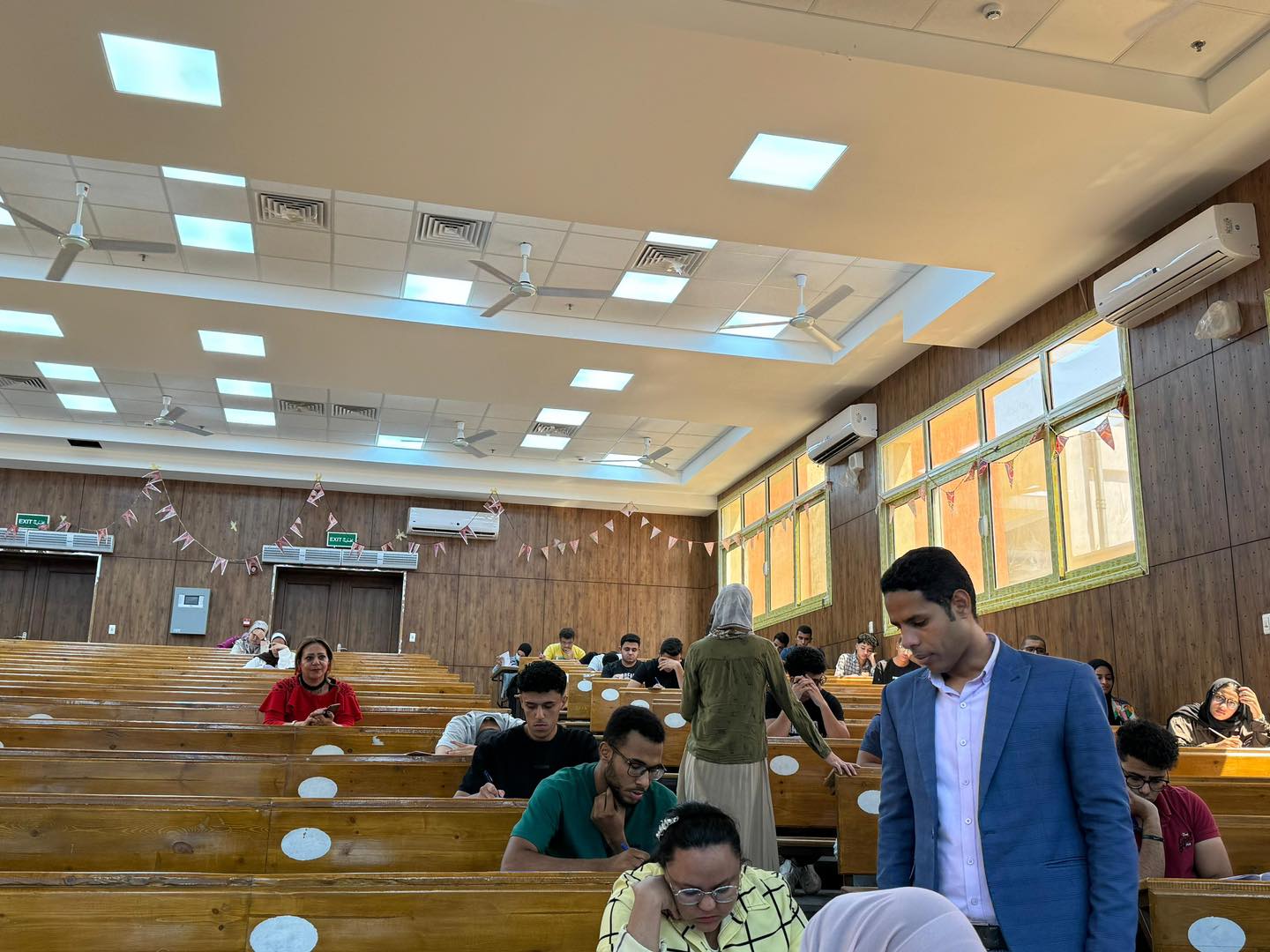 تحت رعاية الدكتور أحمد عكاوي رئيس جامعة جنوب الوادي والاستاذ الدكتور محمد اسماعيل نائب رئيس الجامعة الأكاديمي وبإشراف الدكتور سلام علي شوري أدى اليوم طلاب برنامج العلاج الطبيعي امتحانات نهاية الفصل الصيفي بمدرجات طب الجديدة في جو من الهدوء دون وجود أي صعوبات تواجه أبناءنا الطلاب.