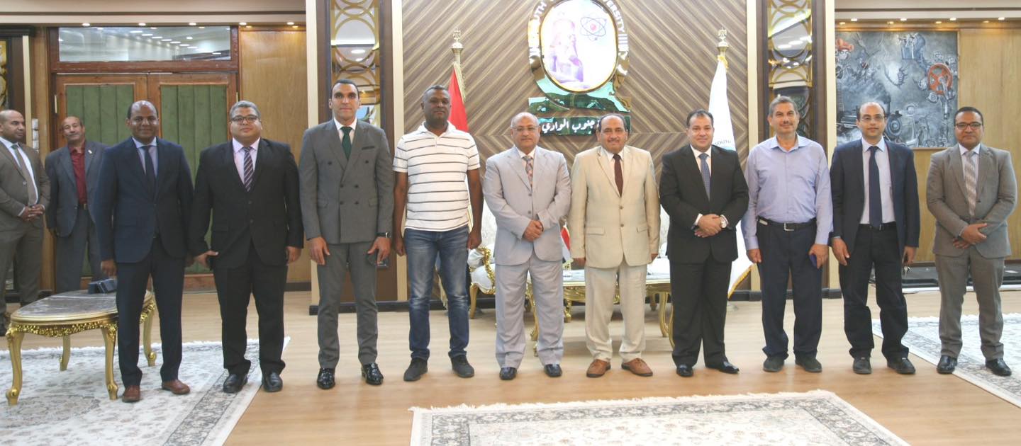 استقبل الدكتور احمد عكاوي رئيس جامعة جنوب الوادي وفد المجلس الاعلى للجامعات لفحص الامكانيات المادية و البشرية لبرنامج الهندسة بجامعة جنوب الوادي الاهلية بحضور الدكتور محمد اسماعيل النائب الاكاديمي لرئيس الجامعة الاهلية ، والدكتور فرج خضاري عميد كلية الهندسة مسئول مركز المعلومات بالجامعة الاهلية ، و الدكتور عبد الرحيم يوسف منسق برنامج كلية الهندسة بالجامعة الأهلية، الدكتور عادل محمد احمد مدير مركز ضمان الجودة بالجامعة الأهلية