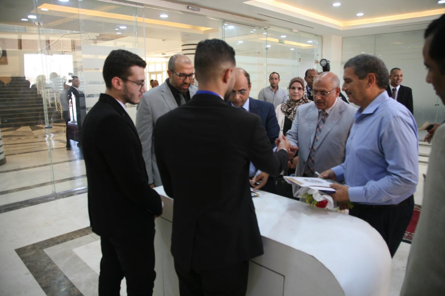 وضم وفد الاعلى للجامعات الدكتور الدسوقي ابراهيم صالح نائب رئيس جامعة السويس السابق استاذ بكلية التكنولوجيا و التعليم بجامعة السويس ، الدكتور المعتز يوسف عبد العزيز الاستاذ بكلية الهندسة جامعة عين شمس ، الدكتور كمال محمد حافظ الاستاذ بكلية الهندسة جامعة قناة السويس