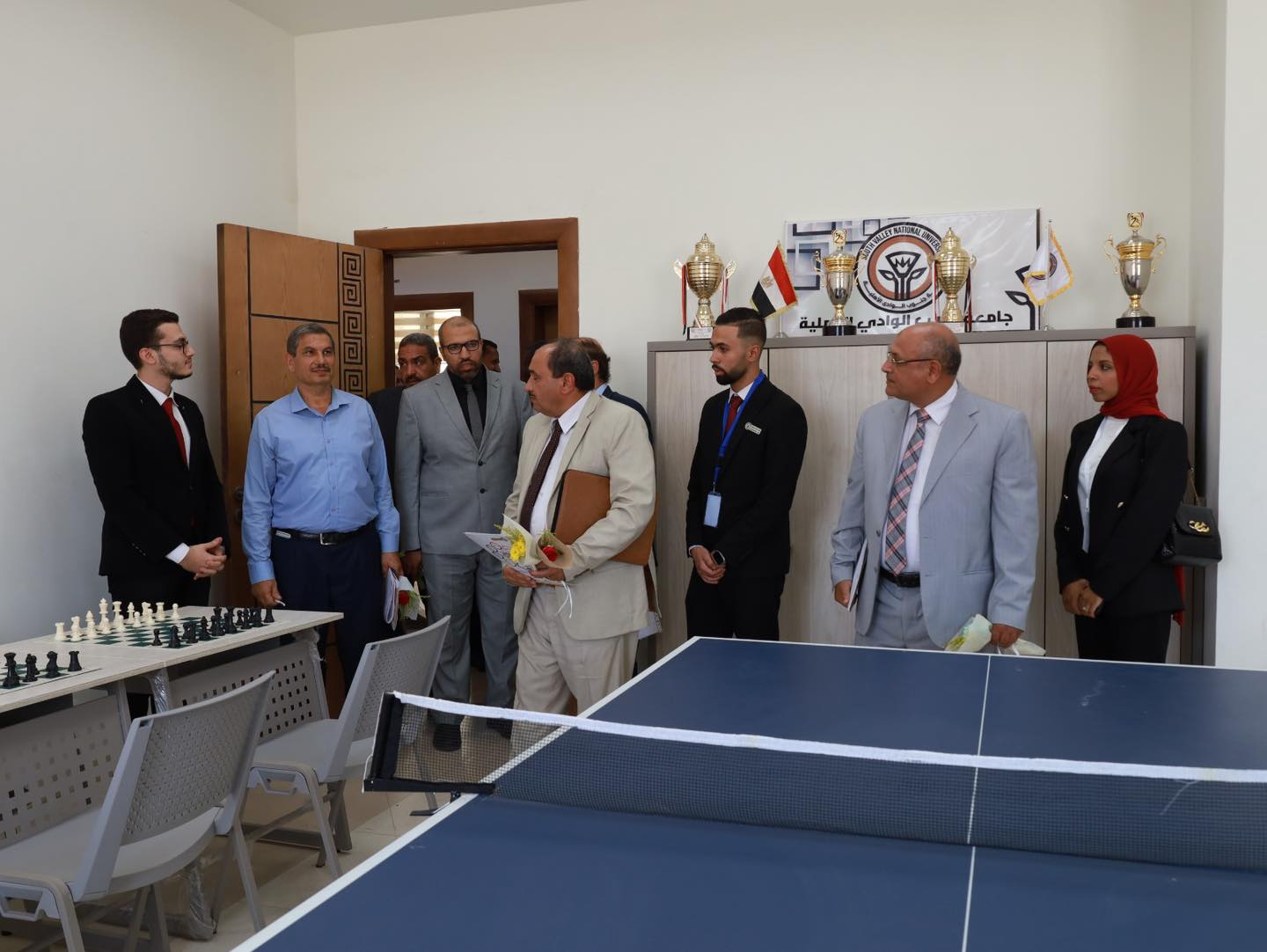 وقام وفد الاعلى للجامعات بجولة تفقدية بمقر جامعة جنوب الوادي الاهلية شملت المعامل وقاعات التدريس وقاعات ممارسة الانشطة والمكاتب الادارية والمكتبة وغرف الكنترول