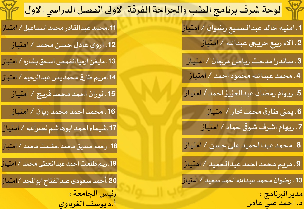 لوحة شرف الفصل الدراسي الأول ببرنامج الطب والجراحة