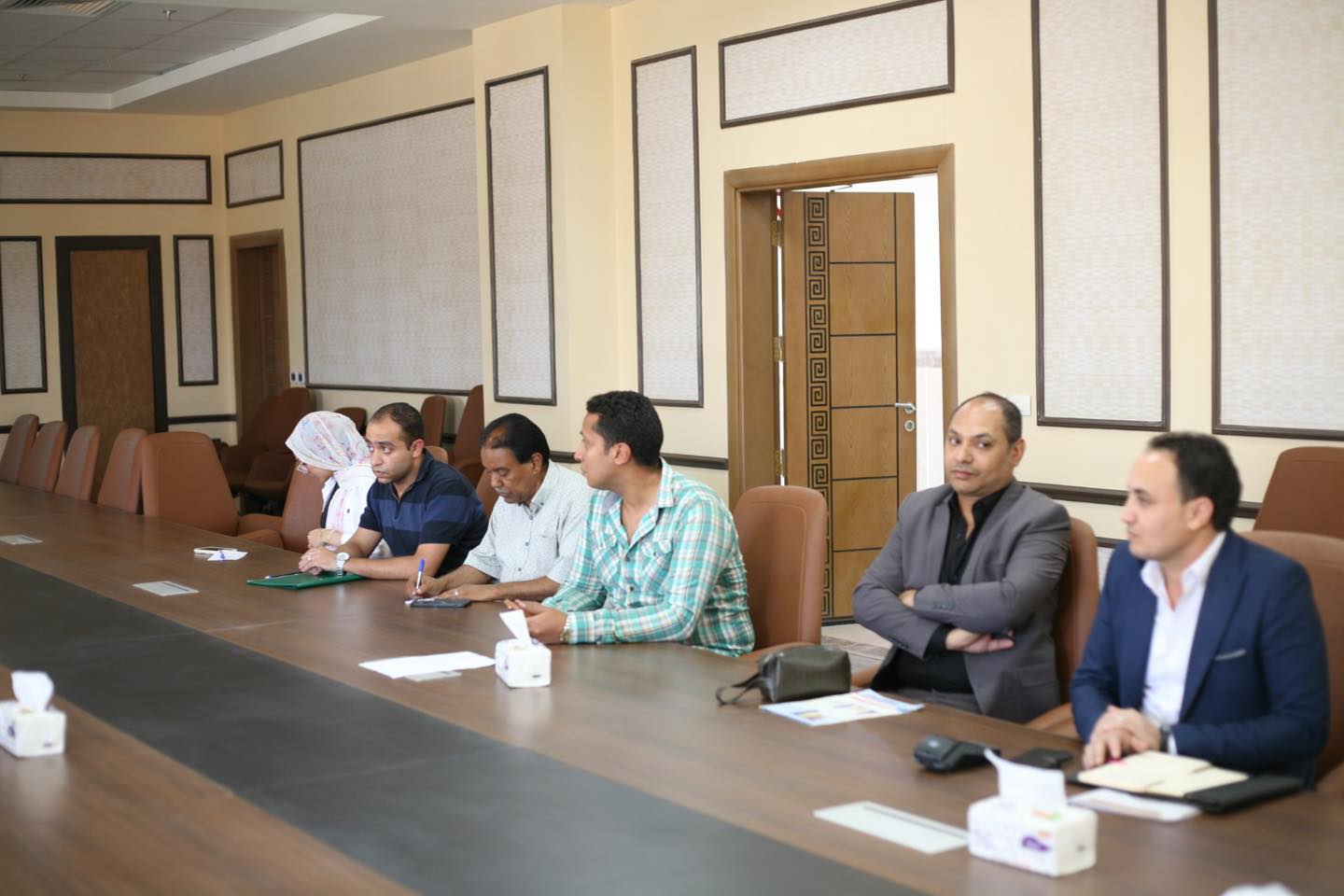 ناقش الدكتور احمد عكاوي رئيس جامعة جنوب الوادي التطبيق الالكتروني للموارد البشرية بالجامعة الاهلية خلال الاجتماع الذي اقيم بمقر جامعة جنوب الوادي الاهلية بحضور الدكتور محمد اسماعيل النائب الاكاديمي لرئيس الجامعة الاهلية و الدكتور عماد علي عميد كلية الحاسبات و المعلومات ولفيف من منسقي البرامج ومسئولي مركز المعلومات والموارد البشرية بالجامعة واعضاء الجهاز الاداري