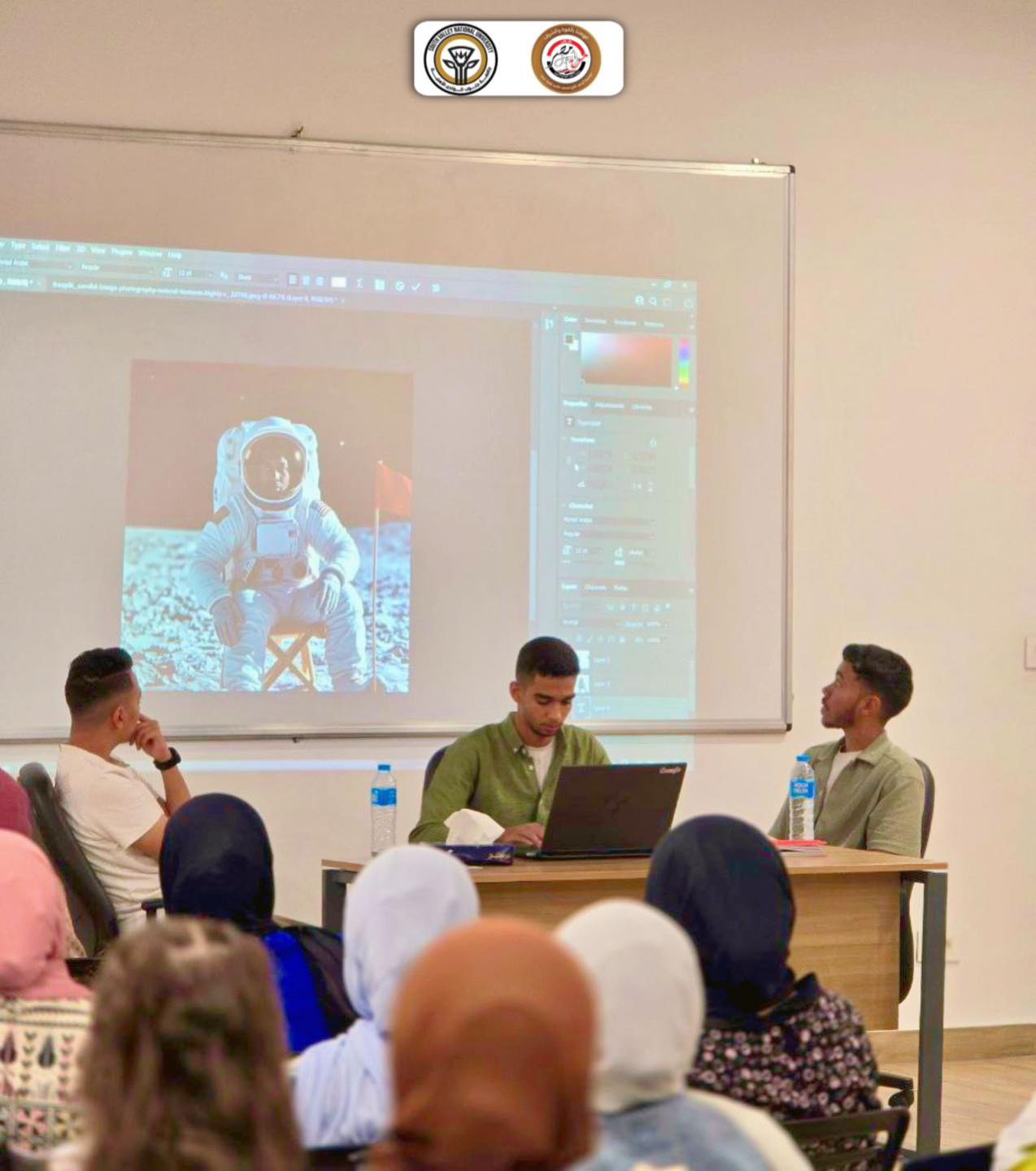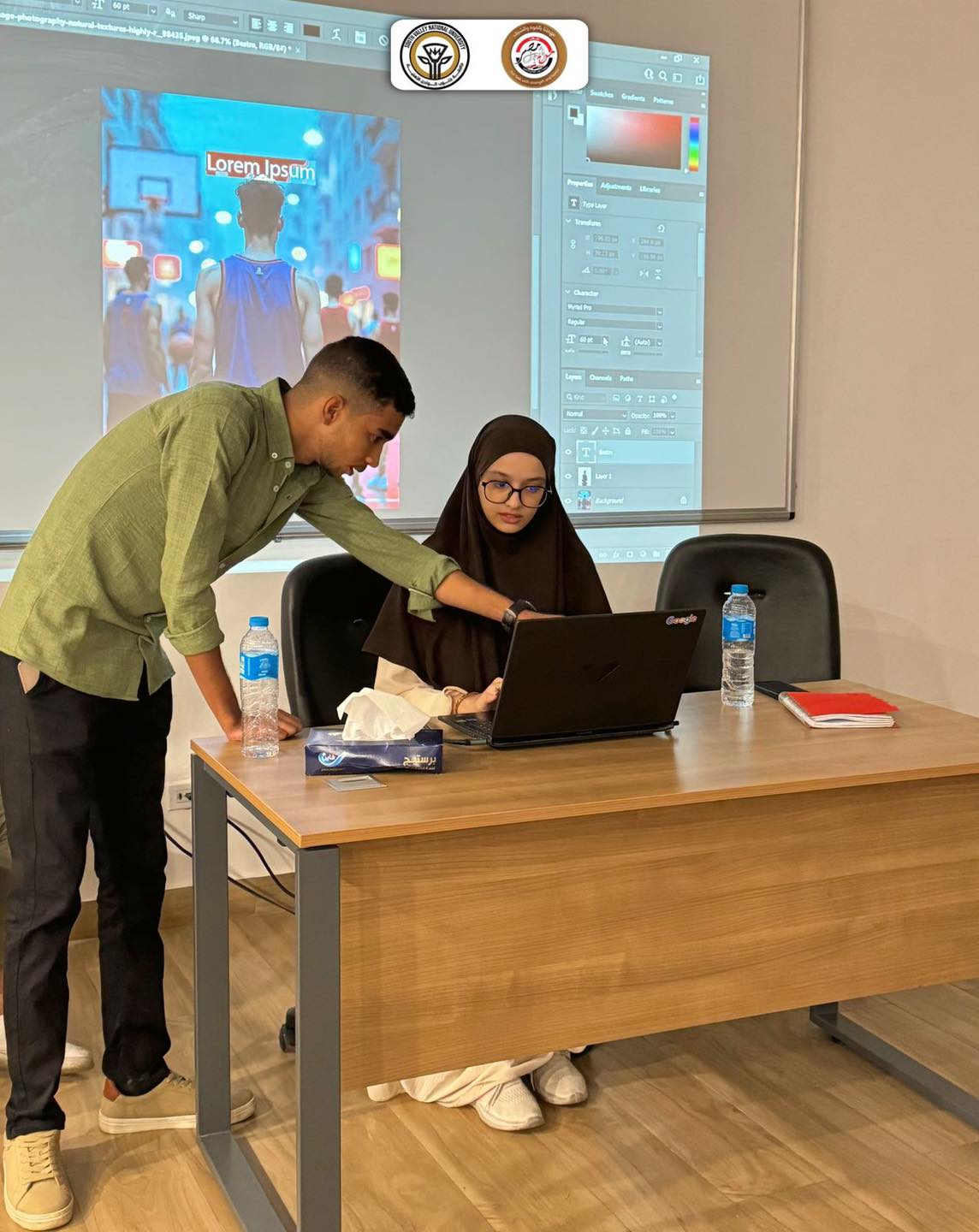 نظمت اسرة طلاب من اجل مصر ببرنامج الحاسبات والذكاء الاصطناعى تحت اشراف ادارة رعاية الطلاب كورس جرافيك ديزاين ومن خلال الكورس هيتم تعلم اساسيات الفوتوشوب والتصميم الجرافيكي الكورس ابتدي الكورس من يوم ١٠/٢٧ لمدة شهر ومن خلال الكورس ايضا سوف يتم تعلم تعديل الصور و تصميم البوسترات و الشعارات.