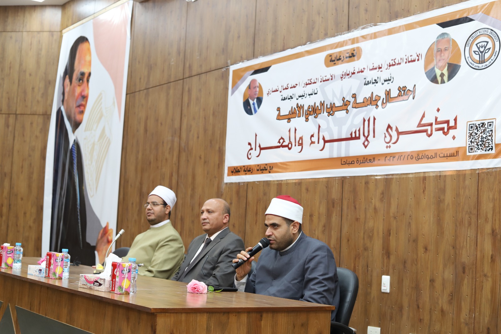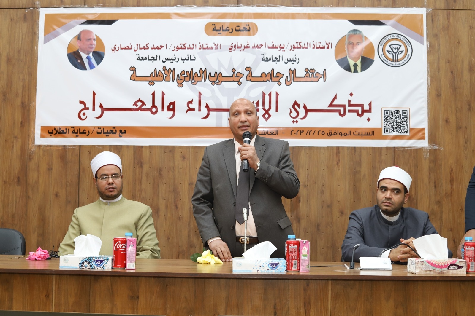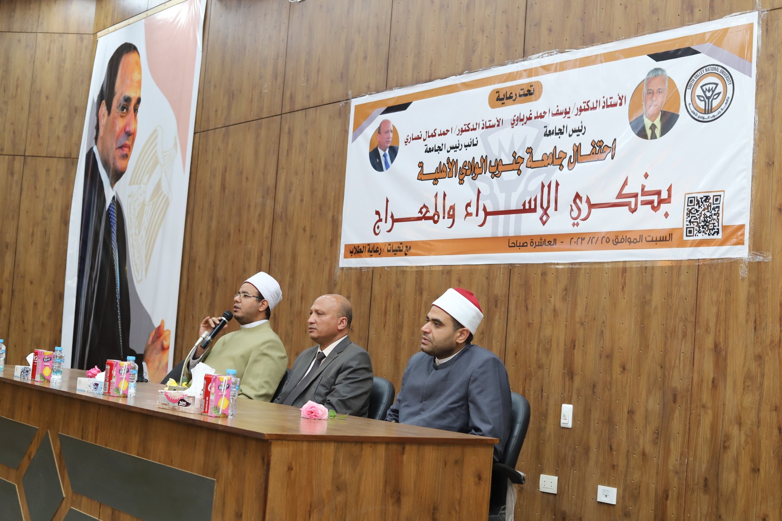 نائبا عن الدكتور يوسف غرباوي رئيس جامعة جنوب الوادي شهد الدكتور احمد كمال نصاري نائب رئيس الجامعة الاهلية الاكاديمي احتفال الجامعة الاهلية بذكرى الاسراء و المعراج بحضور الدكتور عبد الله حارس بمديرية اوقاف قنا و الشيخ علاء احمد محمود امام مسجد سعودي بقنا و منسقي البرامج الدراسية بالجامعة الاهلية