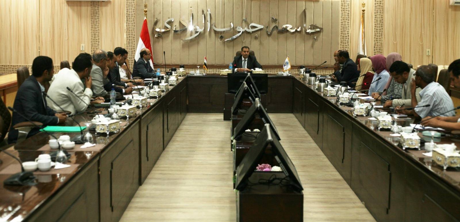 الدكتور أحمد عكاوي، رئيس جامعة جنوب الوادي، اجتماعًا