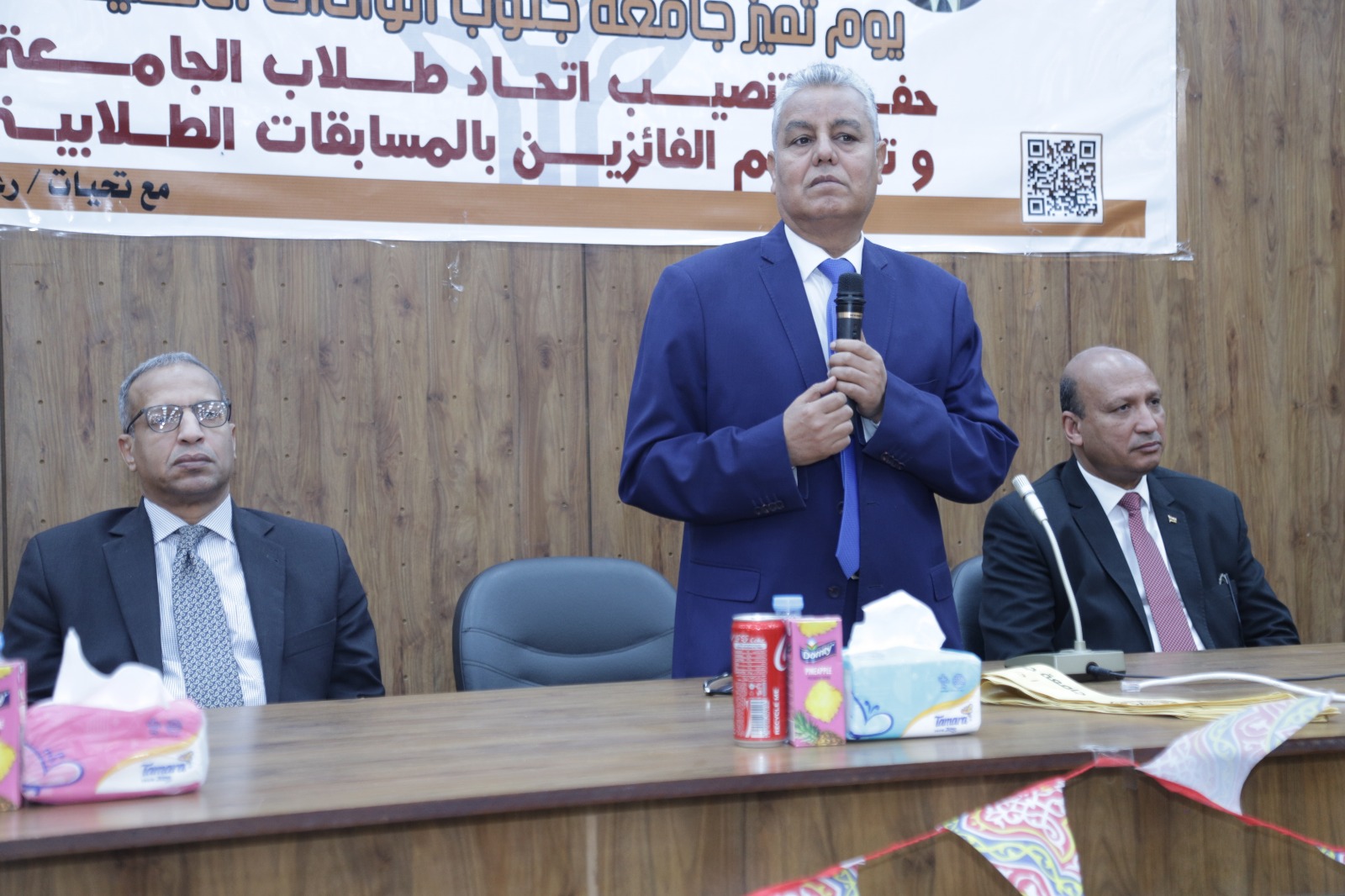 شهد الدكتور يوسف غرباوي رئيس جامعة جنوب الوادي يوم التميز بجامعة جنوب الوادي الأهلية وحفل تنصيب اتحاد طلاب الجامعة الأهلية وتكريم الفائزين بالمسابقات الطلابية بحضور الدكتور احمد كمال نصاري نائب رئيس الجامعة الأهلية الأكاديمي والدكتور بدوي شحات نائب رئيس الجامعة لشئون التعليم والطلاب.