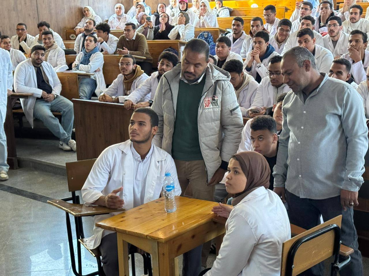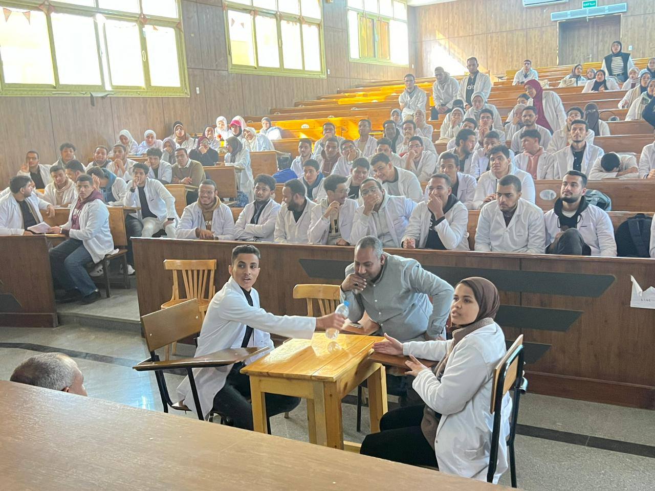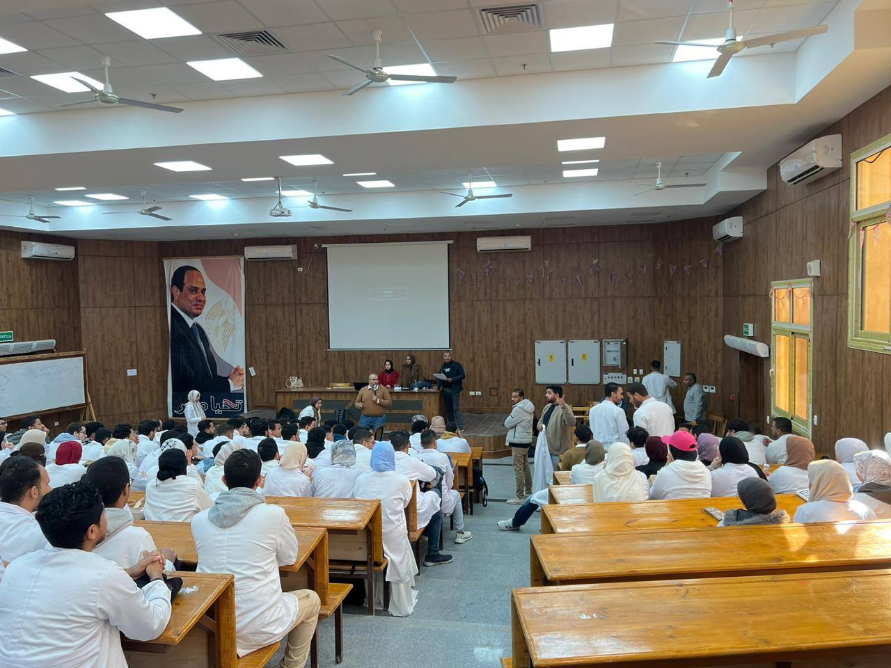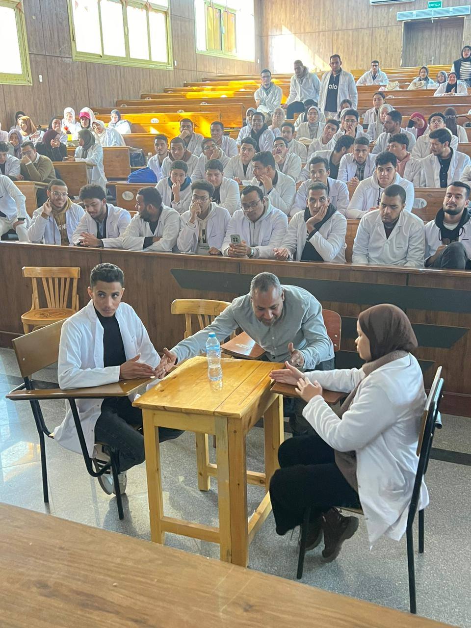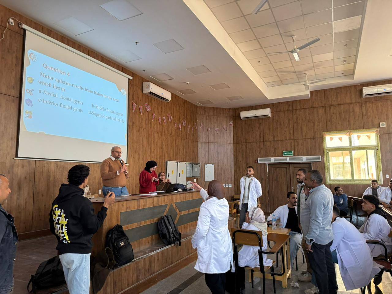 تحت رعاية الدكتور أحمد عكاوي، رئيس الجامعة، والدكتور محمد إسماعيل، نائب رئيس الجامعة للشؤون الأكاديمية، والدكتور أحمد علي عامر، مدير برنامج الطب والجراحة، وفي إطار حرص الجامعة على تطوير العملية التعليمية وتحفيز طلاب الفرقة الثالثة ببرنامج الطب والجراحة على التميز الأكاديمي، تم اختتام مسابقة أفضل سكشن علميًا (العباقرة) لموديول النيورو، والذي يُعد من أصعب الموديولات خلال فترة الدراسة الأكاديمية. وجاءت المسابقة بهدف رفع مستوى التحصيل الدراسي لدى الطلاب، وتعزيز الفهم العميق لموضوعات موديول النيورو، إلى جانب تنمية مهارات التفكير والتحليل والعمل الجماعي، وتحويل المذاكرة من مجرد حفظ نظري إلى منافسة علمية إيجابية تسهم في ترسيخ المفاهيم العلمية بشكل أكثر فاعلية. وقد لوحظ خلال مختلف مراحل المسابقة تحسن ملحوظ في مستوى أداء الطلاب، وزيادة واضحة في معدلات التفاعل داخل السكاشن، فضلاً عن ارتفاع درجة الاستعداد العلمي للموديول مقارنة بالفترات الدراسية السابقة، وهو ما يعكس الأثر الإيجابي للمسابقة على العملية التعليمية. وتتقدم إدارة المقرر بخالص التهنئة إلى سكشن (2) لحصوله على لقب أفضل سكشن علميًا، بعد أداء متميز عكس الجهد المبذول والمذاكرة الواعية والفهم الحقيقي للمحتوى العلمي، حيث ضم الفريق الطلاب: باسم مصطفى بكري، إيمان عادل أمين، الزهراء محمد عطيتو، أسماء مصطفى السيد محمد، إسراء أيمن محمد، إسراء حسين عبد الله، تغريد عبد المنعم علي، حاتم أمام حسن، أنس مصطفى محمد، بشار فتح الله عبد الجيد، وأمير رائف صلاح. كما تتوجه إدارة البرنامج بالشكر والتقدير إلى جميع الطلاب المشاركين في المسابقة، وإلى أعضاء هيئة التدريس والهيئة المعاونة القائمين على تنظيمها وتحكيمها، مؤكدة أن مثل هذه الأنشطة التعليمية التفاعلية تسهم بفاعلية في إعداد طبيب المستقبل القادر على التفكير والتحليل واتخاذ القرار، وليس الاعتماد على الحفظ فقط. وقد أُقيمت المرحلة النهائية للمسابقة تحت إشراف الدكتورة مها عبد الباقي، أستاذ التشريح، والدكتورة بسمة تيتو، منسق الموديول وأستاذة الباثولوجي، في إطار الحرص على تطبيق معايير علمية دقيقة وضمان عدالة التقييم بين جميع الفرق المشاركة.