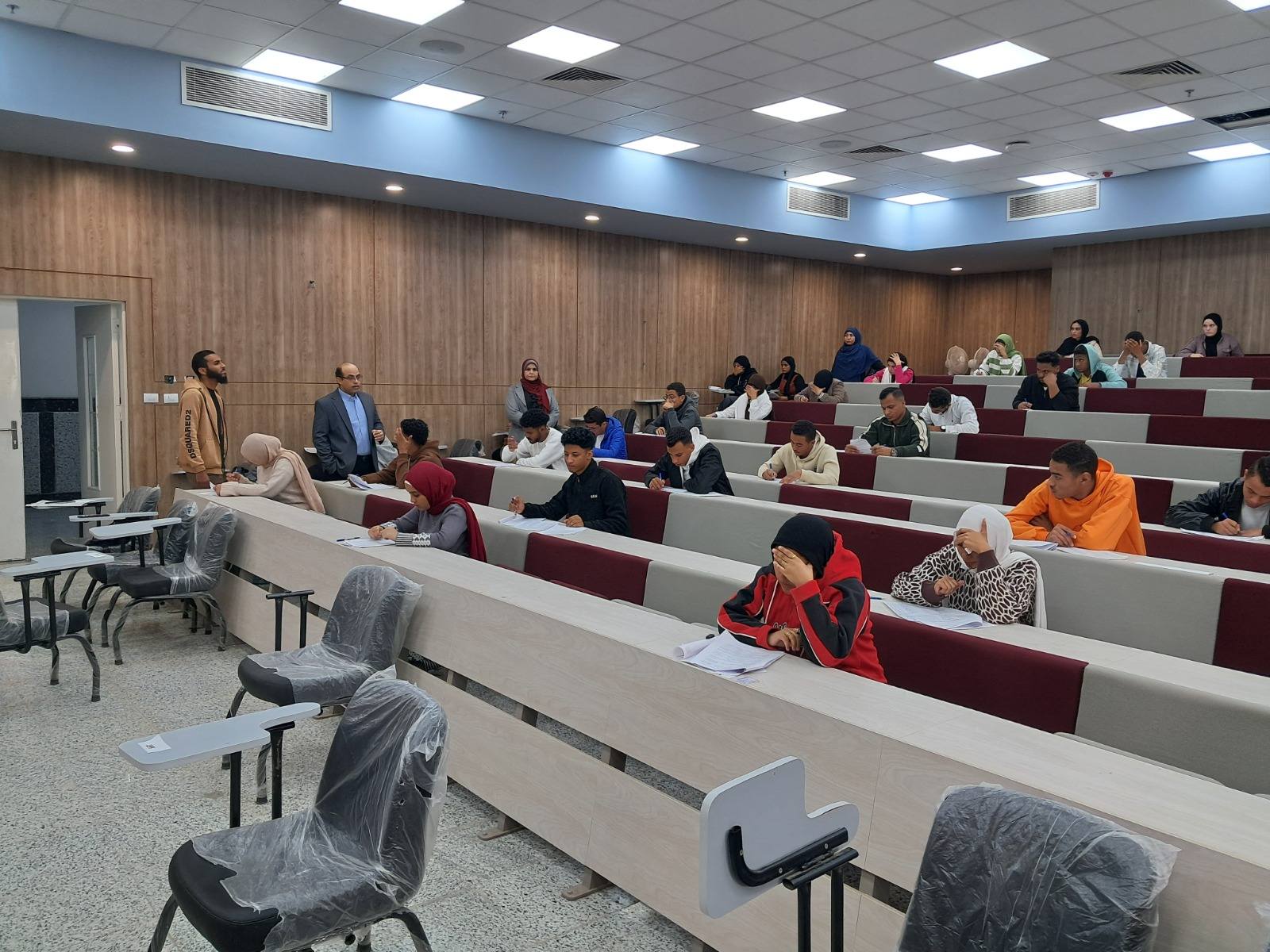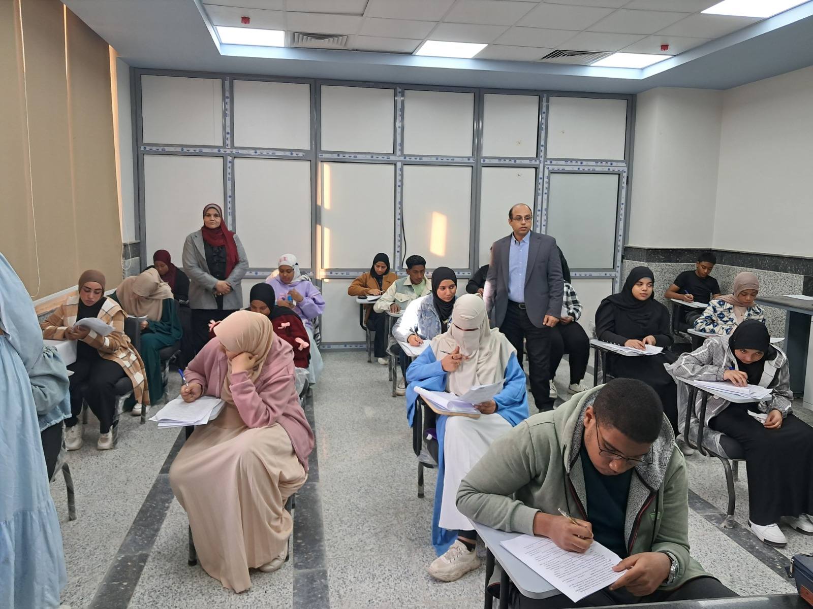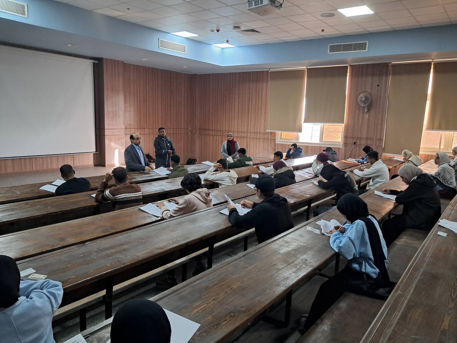 برعاية الدكتور أحمد عكاوي رئيس الجامعة والدكتور محمد إسماعيل النائب الأكاديمي للجامعة الأهلية انتظمت امتحانات الفصل الدراسي الاول لبرنامج التمريض بإشراف الدكتورة هناء صبره مدير البرنامج وقام الدكتور محمد اسماعيل النائب الاكاديمي للجامعة بجولة تفقدية لمتابعة حسن سير العمل بلجان الامتحانات