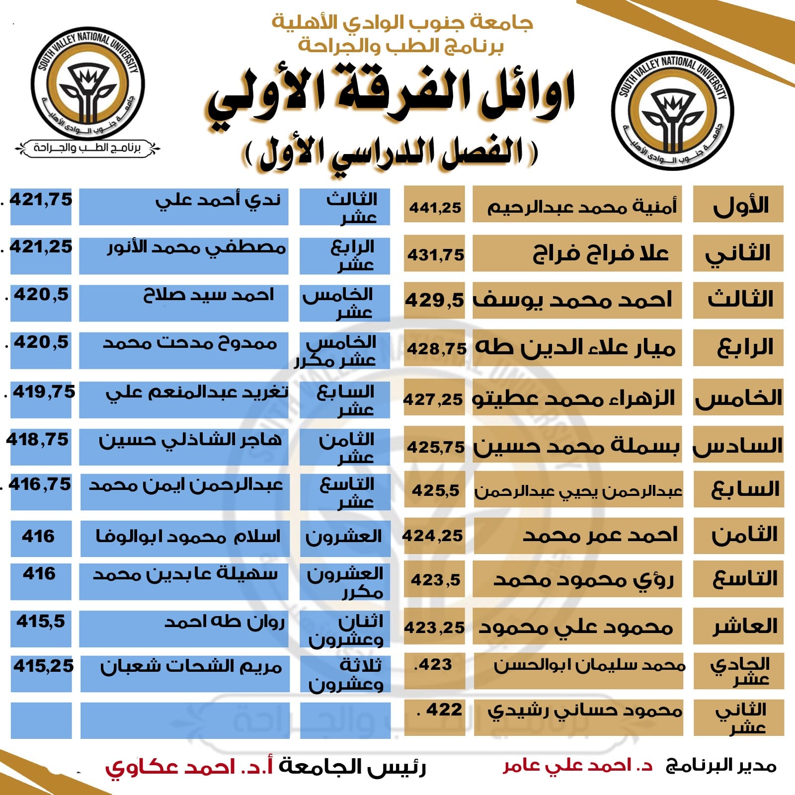 أوائل الفرقة الأولى ببرنامج الطب والجراحة |