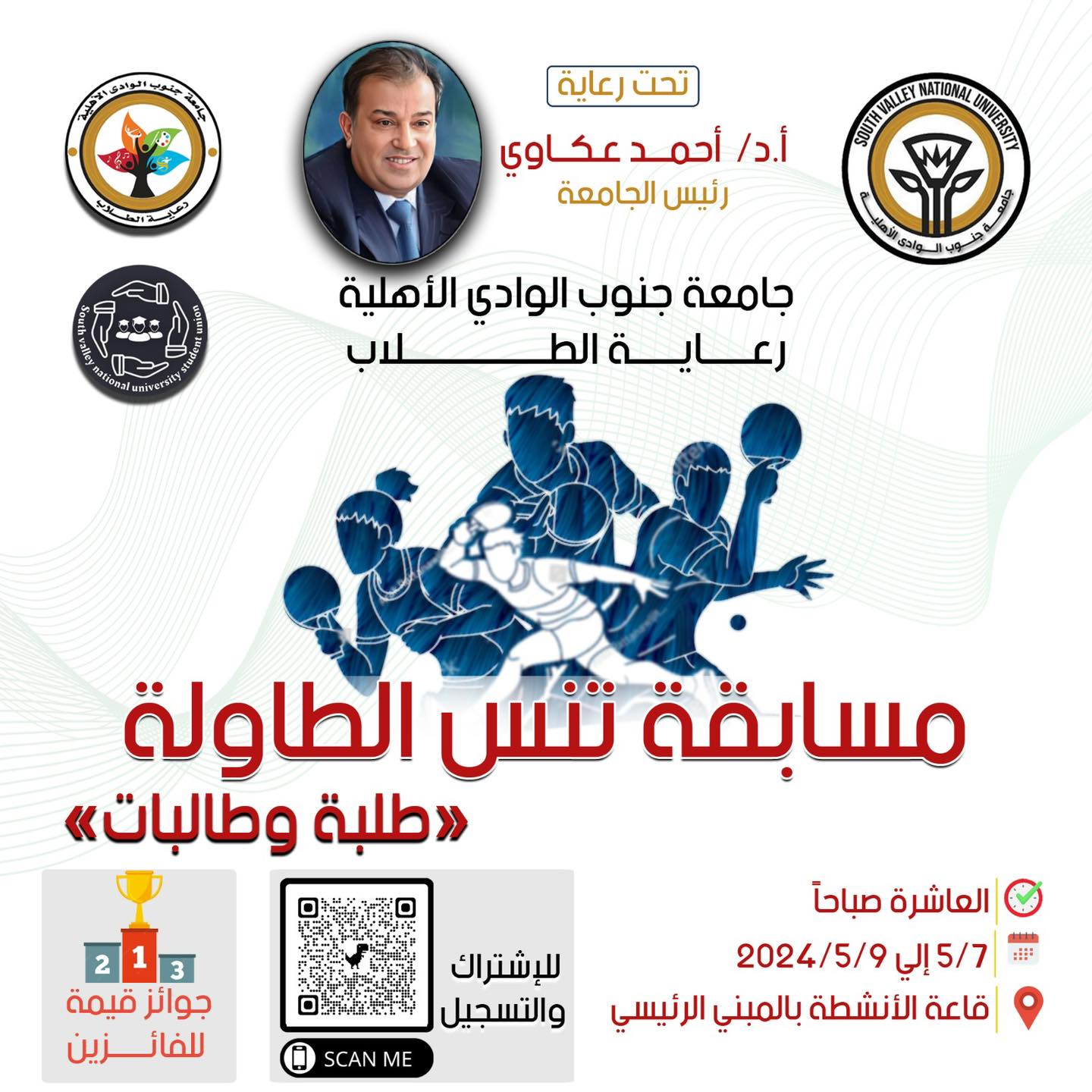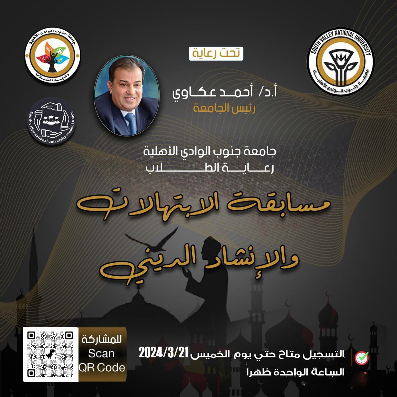 تحت رعاية الدكتور احمد عكاوي رئيس الجامعة والدكتور/ محمد اسماعيل النائب الأكاديمي و حرصاً من ادارة رعاية الطلاب بجامعة جنوب الوادي الاهلية >>>> عرض |