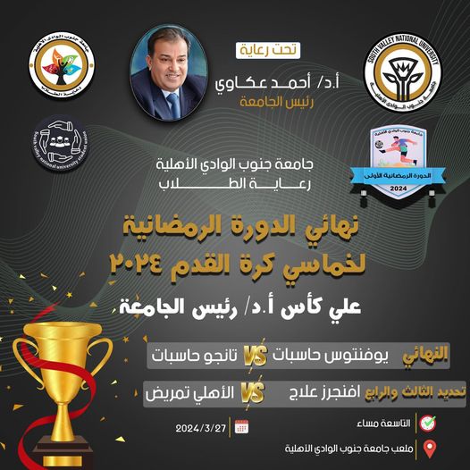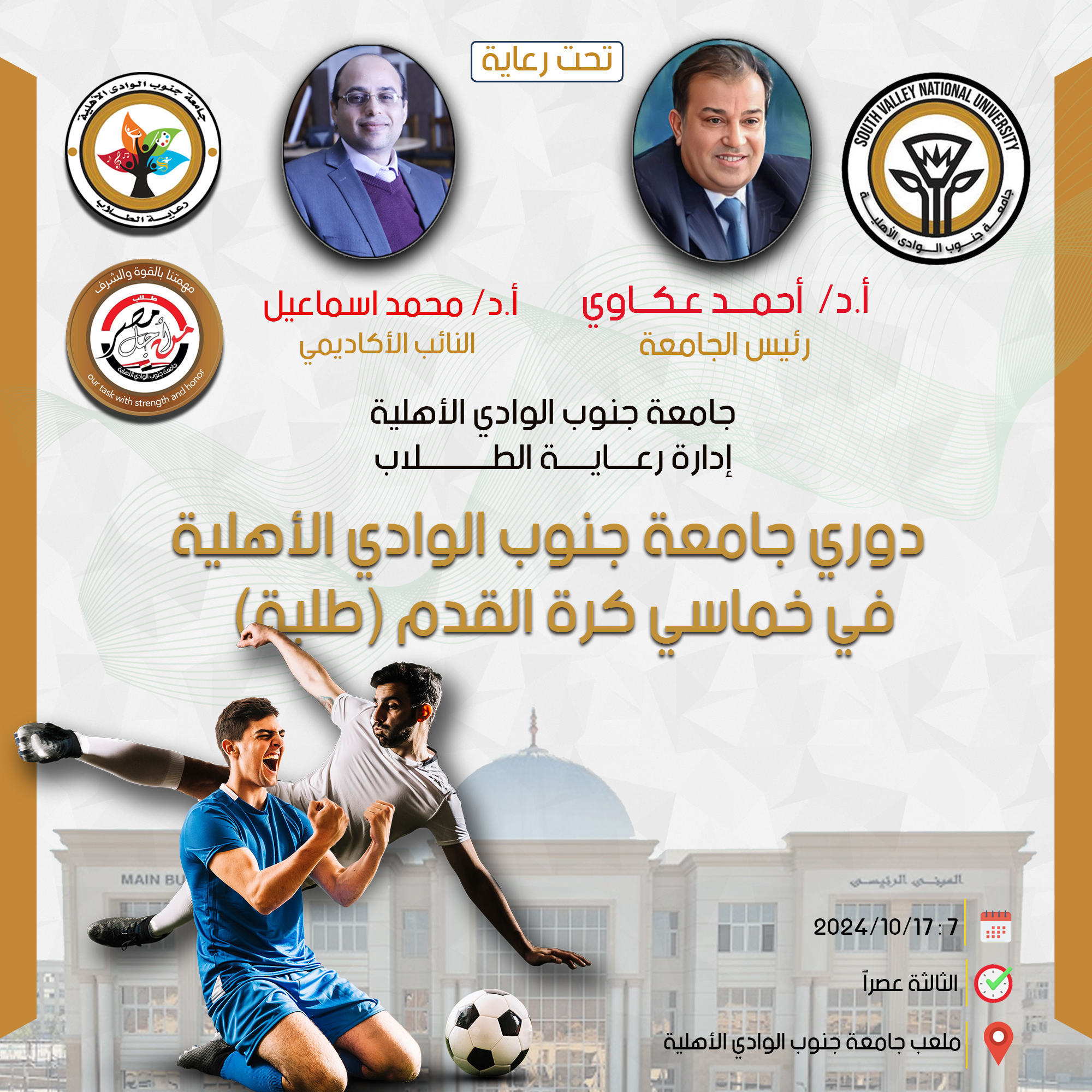 انطلاق بطولة خماسي كرة القدم للطلبة جنوب الوادي الاهلية لمختلف البرامج |