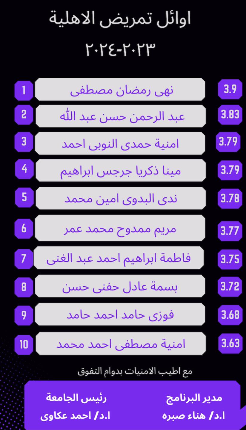 برنامج التمريض يعلن أوائل الفصل الدراسي الأول |