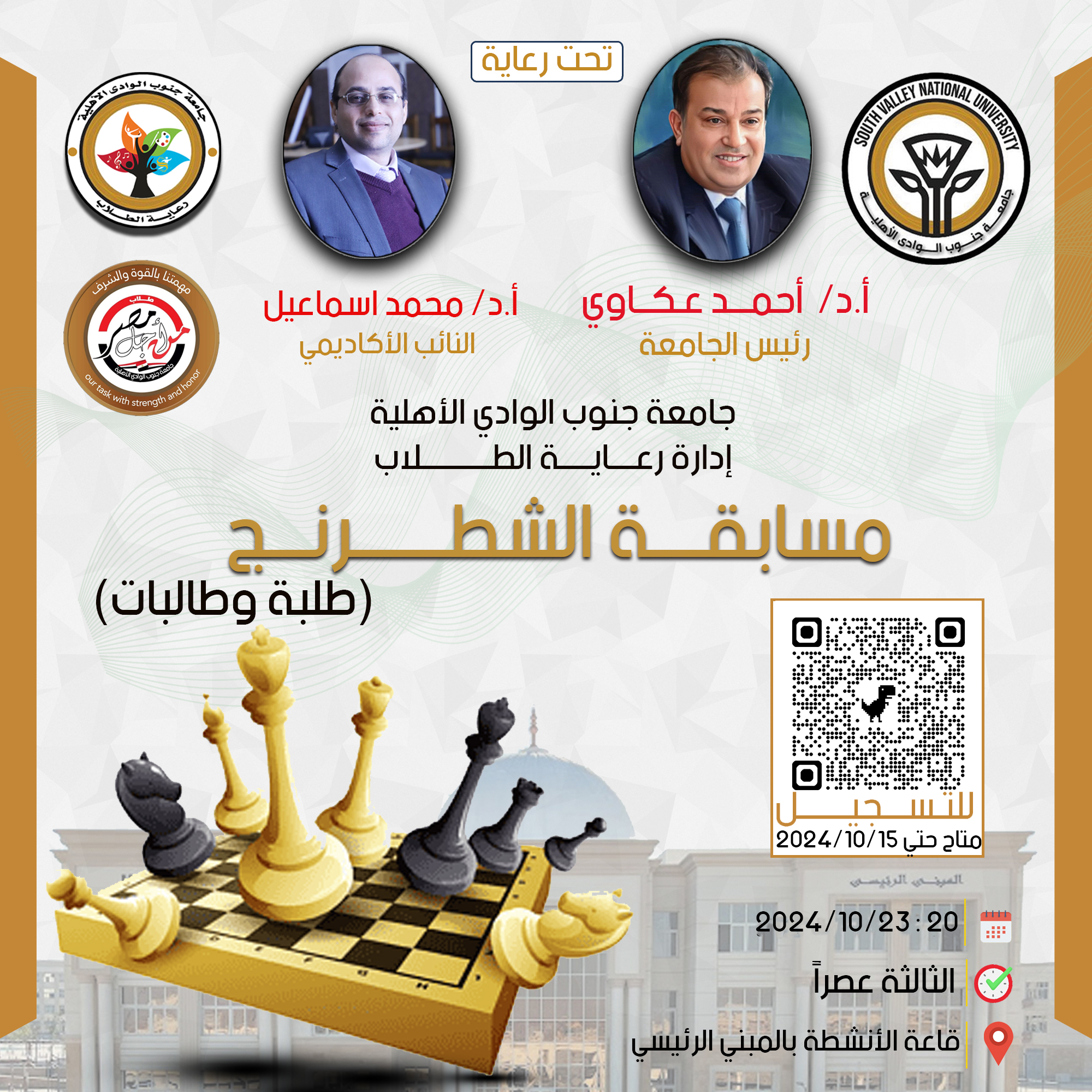 انطلاق مسابقة الشطرنج بجامعة جنوب الوادي الاهلية |